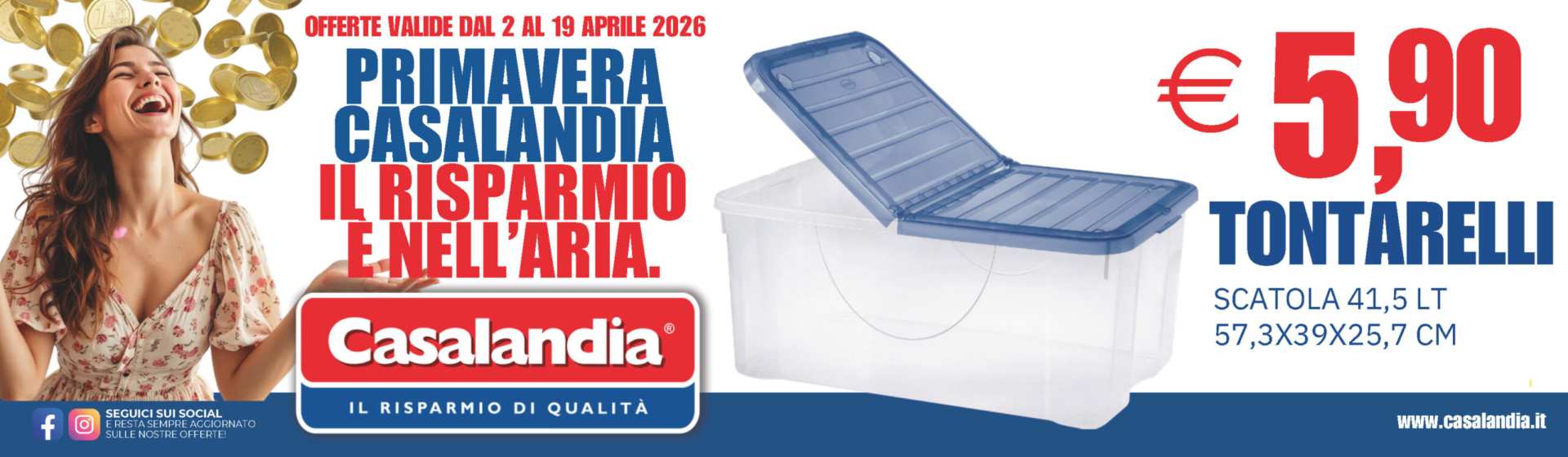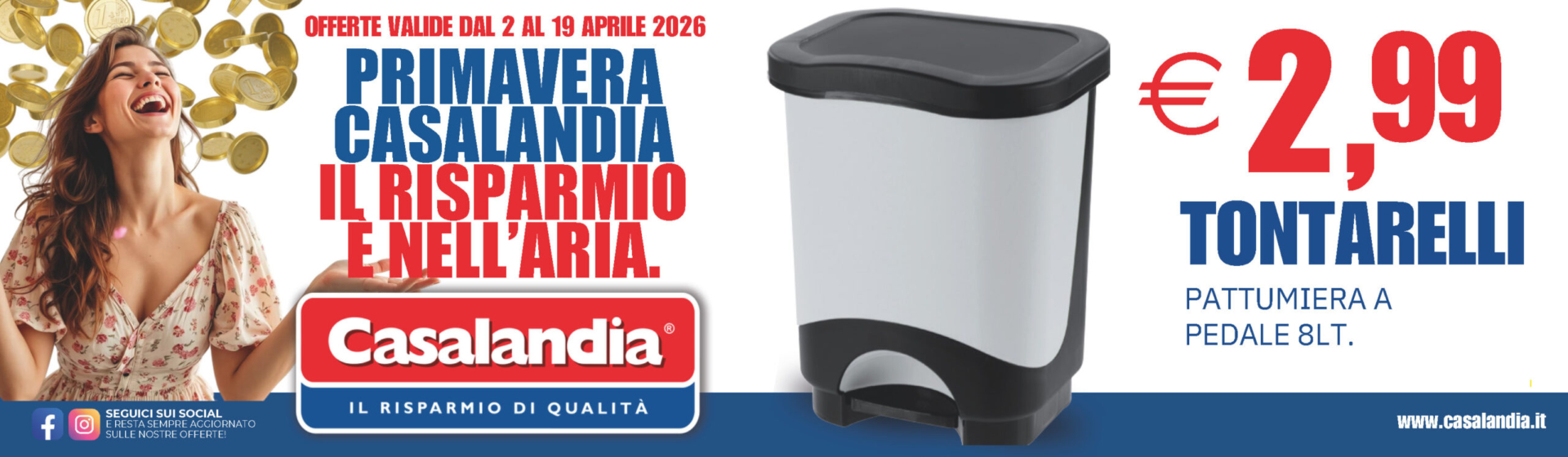 Settimana dopo settimana, troverai sul volantino tutte le nostre offerte, per poter acquistare tutto quello che desideri senza dover rinunciare a nulla. Qualità e convenienza: sono questi i due importanti valori della nostra catena di casalinghi.